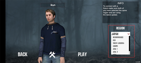 4、选择“region”以选择延迟较低的地区。