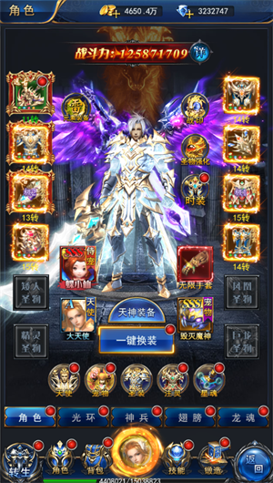 1. 装备使用点击【一键换装】直接在包裹中选择符合条件的高战力装备进行穿戴或替换已穿戴的装备