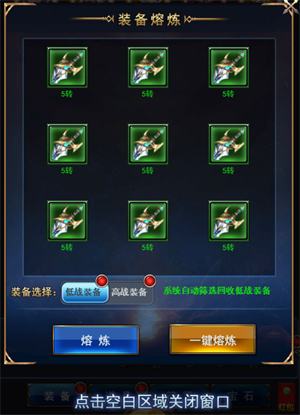 中期装备:中期装备可以通过低级的装备用装备合成提升而成,也可以从野外BOSS掉落