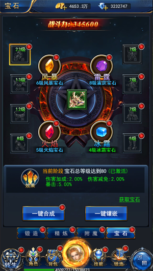 每类宝石分为多个等级,相同类型相同等级的两颗宝石可合二为一升级为更高一级的宝石;