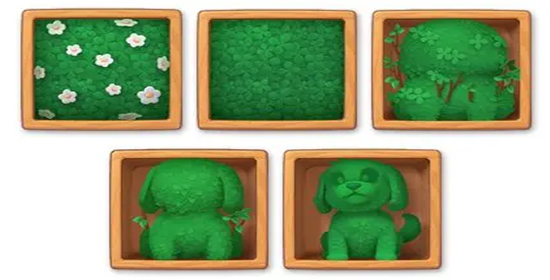 消除方法:在造型灌木旁消除五次来铺开草地!