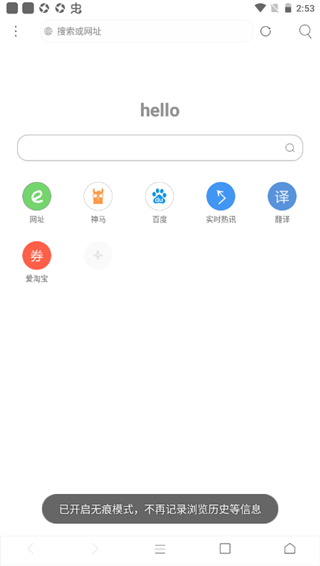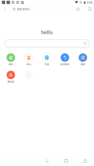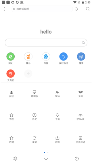 2、软件的首页可以看到各种实用功能,搜索框、搜索引擎等等