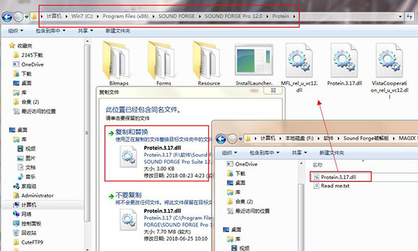6、安装完成后将破解补丁“Protein.3.17.dll”复制到C:Program FilesSOUND FORGESOUND FORGE Pro 12.0Protein目录下替换原文件即可