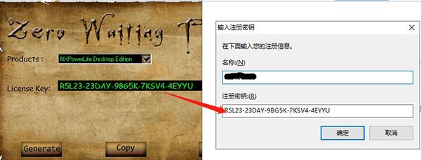 9、进入Keygen文件夹,可得到NXPowerLite注册码补丁,双击打开补丁,名称可任意填写,将注册码复制至注册密钥中,然后点击“确定”;