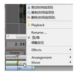 6-3. 在时间线素材条上右击鼠标可弹出时间线功能菜单: