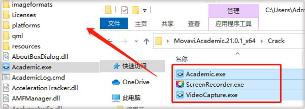 1、下载解压,得到Movavi Academic 2021中文原程序和Crk破解文件;