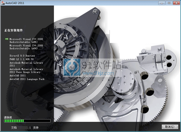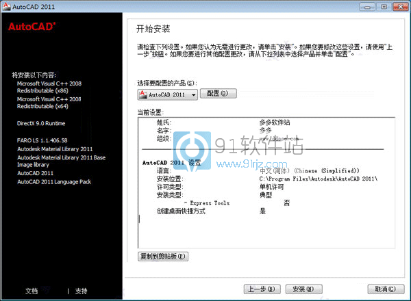 6、这个界面可以看到cad2011对系统的要求,必须安装vc2008,directx9.0等组件;