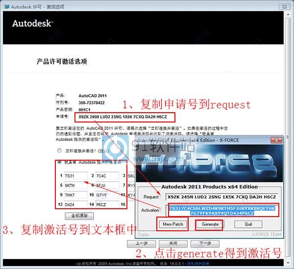 此次的autocad2011 64位免费中文版,附带了产品序列号和密钥的注册机,想要成功激活软件,请参考安装破解教程即可。