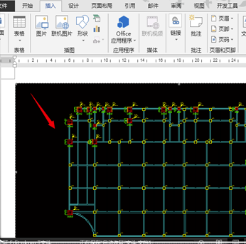 10、返回到word中,这时会就将图形导入进来了,这里是黑底的,如果不喜欢,在pkpm T图编辑软件中,点击“显示”——“背景颜色”——“调色板”选择自己喜欢的颜色即可。这里导入的图形方便快捷,最大的 好处是,它是可以编辑的,双击既可以进行编辑。