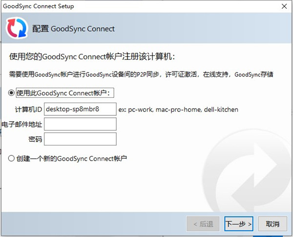 2、需要配置GoodSync Connect,可以使用你的账户,也可以新创建一个账户