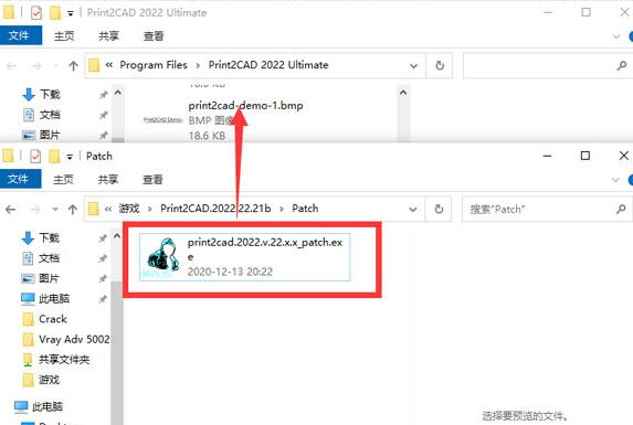 9、打开“Patch”文件夹,将里面的“print2cad.2022.v.22.x.x_patch.exe”破解补丁文件复制到软件的安装根目录下,如果您上面没有修改此路径,默认路径为【C:Program FilesPrint2CAD 2022 Ultimate】