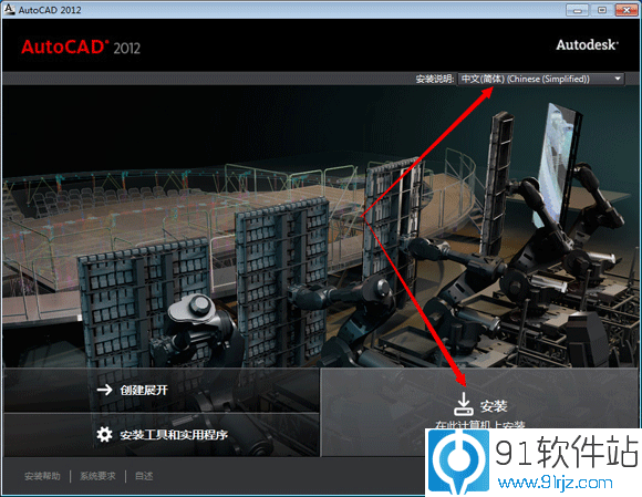1.启动安装 Autodesk AutoCAD 2012。如下图所示: