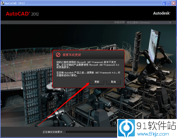 2、安装过程中会检测.NET framework的版本,如果不是4.0最新版会提示要求更新,点更新按钮就可以了。如下图所示: