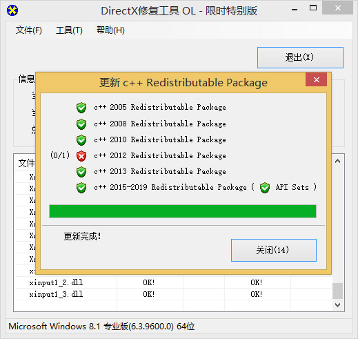 优化了对于c++ 2010的支持。针对c++ 2010在部分电脑修复失败的问题,提供了额外的修复支持,需在选项菜单内开启“C++强力修复”功能和“API Sets强力修复”功能。