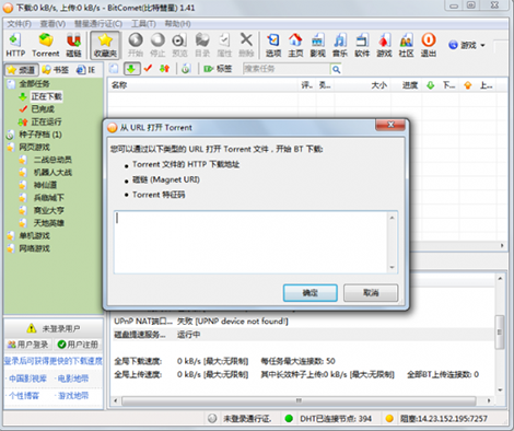 支持DHT网络: 通过公用DHT网络,无需连接Tracker也能进行BT下载。