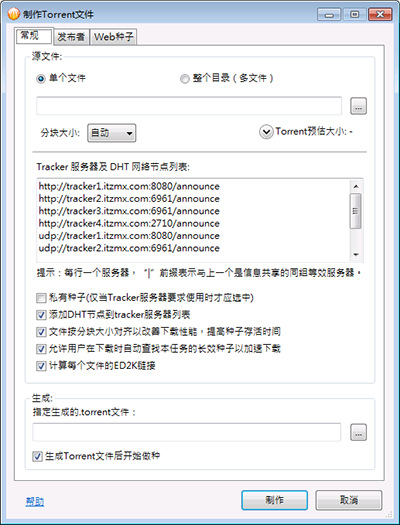 一、怎样使用中科院软件制作BT种子?制作BT种子,打开软件后,直接快捷键CTRL+M键,打开制作窗口,在弹出的窗口中选择源文件地址,也就是你要作为上传文件的地址,可以把准备好的视频添加上。单个文件是上传一个文件,“整个目录”是指上传整个文件夹。添加上以后,选择种子储存目录,然后点击“制作”,即可开始制作种子。