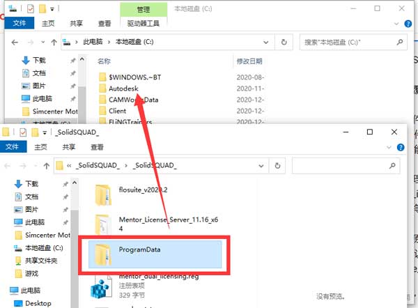 7、先不要运行软件,将ProgramData文件夹复制到C盘根目录下