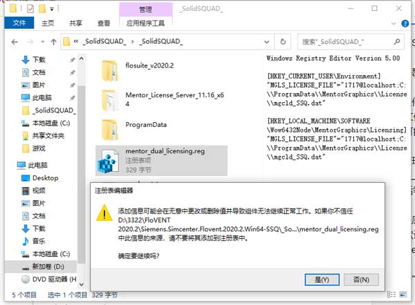 10、最后,运行mentor_dual_licensing.reg添加注册表即可