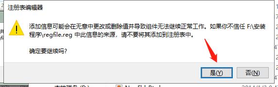 9、然后在安装位置下双击刚才复制过去的regfile.reg,出现弹窗后点击是,