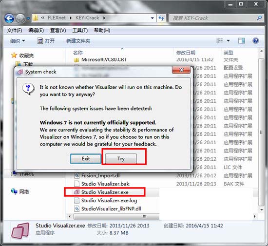 5、运行“KEY-Crack”目录里的“Studio Visualizer”文件,选“try”