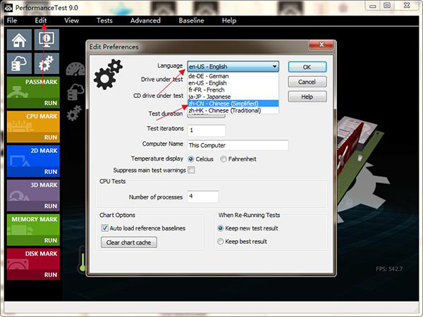 8、运行软件点击edit——preferences在language项选择“zh-CN-Chinese(simplification )”即可切换中文界面