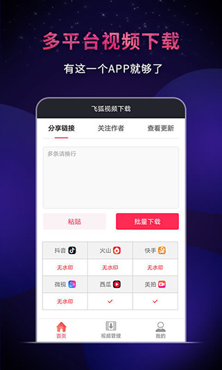 6、飞狐视频去水印安卓版支持批量的下载,而且下载速度快,还可以下载音乐。