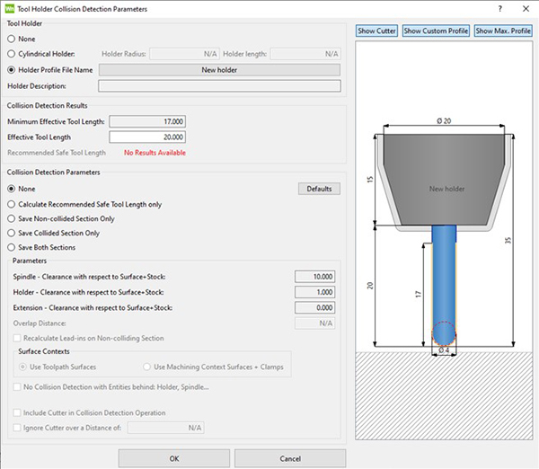 对于全局粗加工刀具路径,现在简化了动态刀柄碰撞检测: