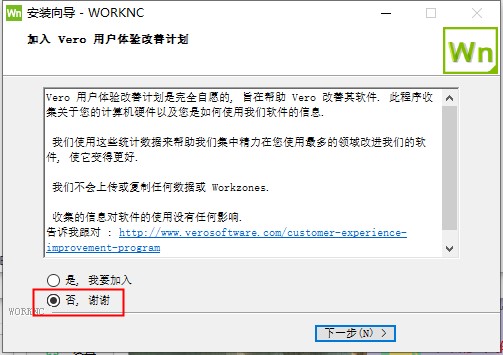 5、等待安装完成,是否加入Vero用户体验改善计划,勾选否,谢谢