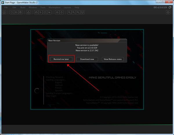 选择加入反馈调查:选中此选项后,您告诉GameMakerStudio2您希望参与反馈调查,这意味着在处理您正在处理的区域时会显示一个消息,并请求评级和反馈。默认情况下,此选项处于启用状