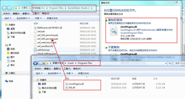 7、将Crack下programfiles中的“CorePlugins.DLL”和“IDE.DLL”复制到软件根目录下并替换