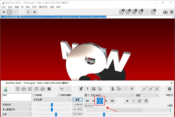 说明:您可以设置动画的所有效果都列在“属性”下拉列表中(3个滑块上方的下拉列表)。默认属性是Position。在此模式下,第一个滑块控制水平,第二个滑块控制垂直位置,第三个滑块控制深度位置。要将文本移向相机,请更改深度位置。请注意,更改场景时会自动创建关键帧。
