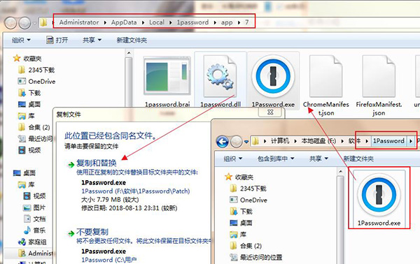 3、安装完成后将破解补丁复制到C:UsersAdministratorAppDataLocal1passwordapp7替换掉原文件即可