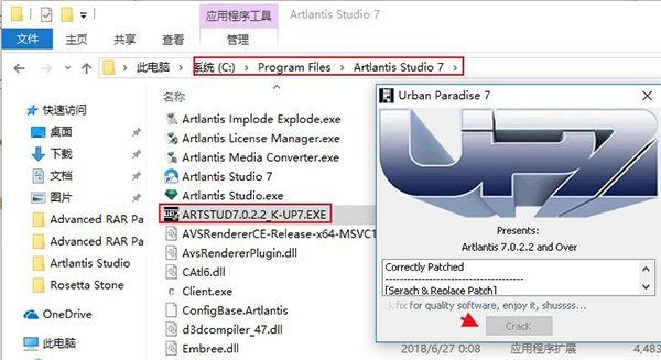8、软件安装完成后,将注册机ArtStud7.0.2.2_K-Up7.exe复制到软件安装目录下,并运行,然后点击crack即可破解,一般默认路径C:Program FilesArtlantis Studio 7
