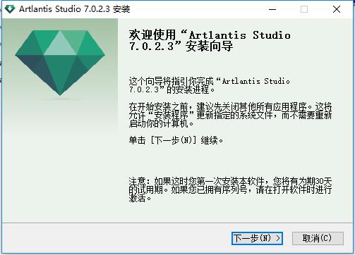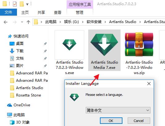 1、下载数据包然后解压,双击“Artlantis Studio 7.0.2.3-Windows.exe”选择简体中文然后点击OK