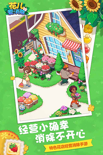 欢迎来到《花儿爱消除》的世界,在这个世界中你将扮演一位刚刚接手了花店的小女孩汉娜,这家花店因为疏于搭理已经破败不堪,如果再这样下去会花店会被开发商拆除建造酒店。小女孩为了保住这家花店,需要经营修复花店,使花店恢复原有的样子,阻止花店被拆除。主要玩法是消除+经营的模式,每过一关消除关卡就能获取一颗星星,攒够了星星就能解锁或是装扮花店的一部分。点击主界面右下角就能进入消除模式啦!入口显示的数字是目前所在的关卡。