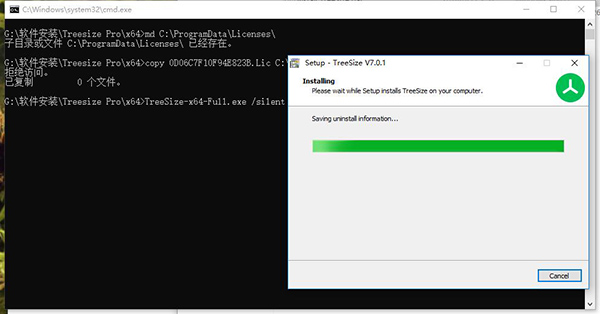 下载Treesize Pro破解版数据包然后解压,双击TreeSize-x64-Full.exe进行安装,出现需要注册码时运行注册文件“install TreeSize.bat”