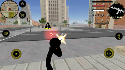 1、基础操作左侧移动、加速,右侧绳索,攻击(跳跃),跳跃,右上侧的武器更换以及血量、经验的显示都实时更新,一览无遗,凭借着大家自由的玩法,与其他帮派的人物进行交火,期间杀人能够获得经验,杀多了会产生星级,警察和其他附近角色会特殊照顾你对你展开火热的进攻,而如何存活,如何将其他人物击杀则是你所需要完成的任务。