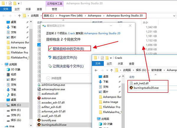 6、将数据包中提供的两个破解补丁复制到上一步打开的安装目录下替换源文件即可