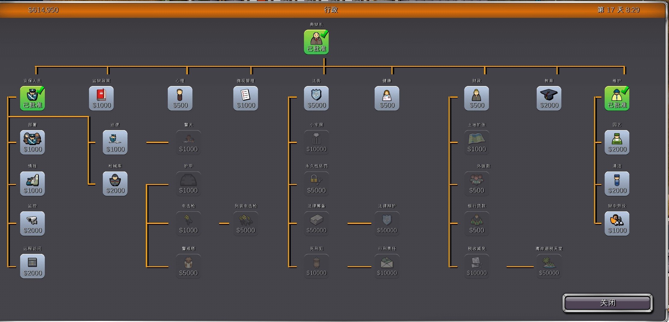 政府成员,无法直接控制整个监狱,他们也不执行任务。相反,政府成员执行机构研究任务以解锁额外的监狱功能。他们需要自己的办公室。除了心理医生可以雇佣多个以外,其他政府成员只能雇佣一个。