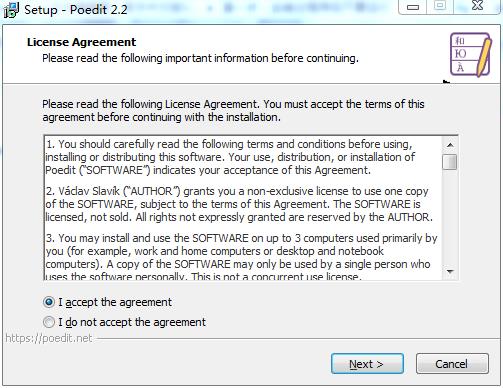 Poedit Pro1、下载软件包解压,运行“Poedit-2.2-setup.exe”程序安装软件,选择I accept接受协议。