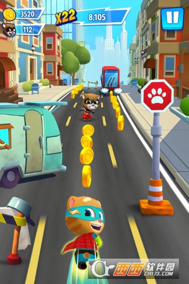 前所未有的英雄跑酷体验,一定让你大呼过瘾,满足你的英雄情结!在游戏中,你可以操控你的超级英雄角色,穿梭在形色各异的街头,加速前进、灵活躲避,利用你高超的跑酷技术一一闯过那些色彩斑斓的障碍,收集金币。这款游戏为玩家设计了多种关卡,在这里,跑酷不再只是在地面进行,有时候还需要利用路上的道具进行横跨飞跃,非常考验玩家的灵敏。打倒路上遇到的浣熊并升级你的英雄装备,和汤姆猫家族一起拯救世界吧!