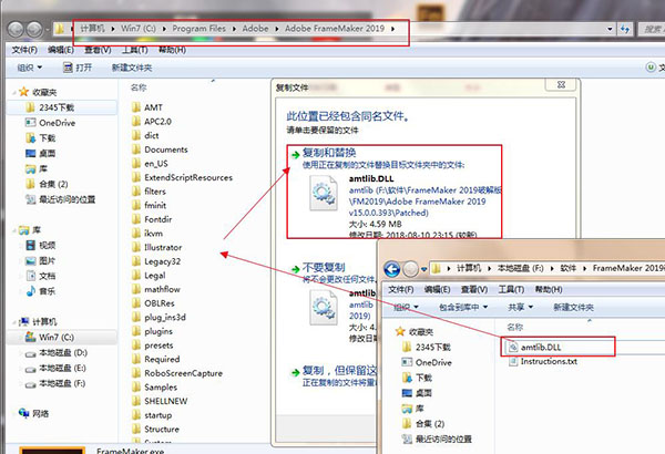 4、将数据包中提供的破解补丁amtlib.DLL复制到上一步打开的文件目录下替换原文件即可
