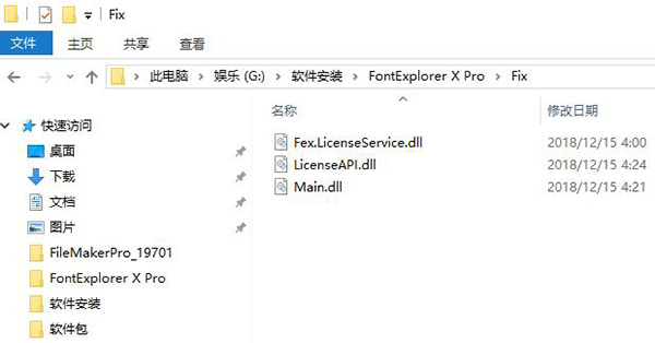 安装FontExplorer X Pro破解版完成后将书包中fix文件夹下的破解补丁复制到安装目录下替换原文件即可