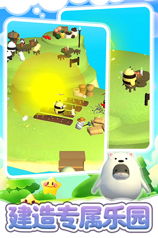 1、游戏玩家们将身处在一片充满小仓鼠的小岛上,需要为它们建造喜欢的房子和食堂,帮助他们进行成长。