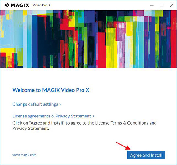 1、下载MAGIX Video Pro X10破解版数据包然后解压,双击“Setup.exe”点击“agree and install”