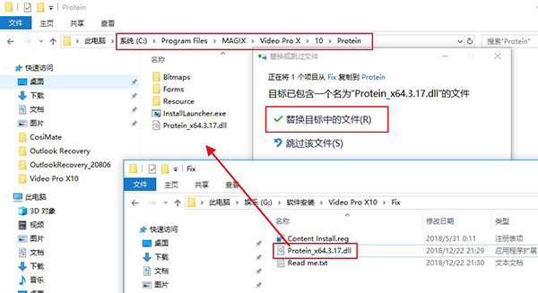 4、安装完成后将破解补丁“Protein_x64.3.17.dll”复制到C:Program FilesMAGIXVideo Pro X10Protein目录下替换原文件