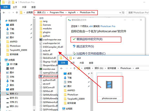6、安装完成后将数据包中的破解补丁复制到C:Program FilesAgisoftPhotoScan Pro目录下替换原文件即可