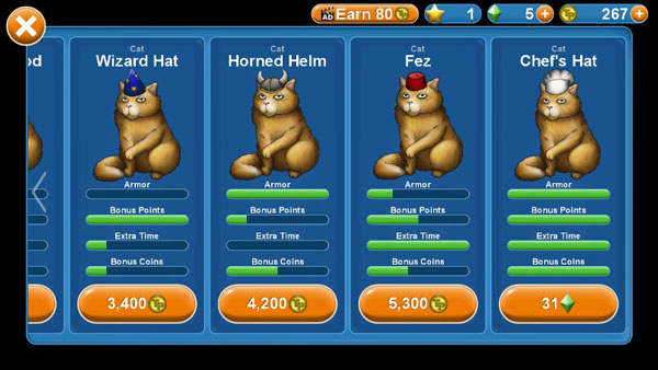 通过积攒金币、钻石来解锁更多的主题,而且不同的猫咪所展现的能力也有所侧重哦。