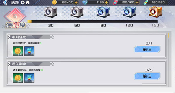 《樱都学园》每日活跃度详解:觉醒们在游戏完成日常任务,可以获得活跃度,累积一定的活跃度可以获得大量经验,达到每个阶段可以开启活跃度宝箱获得免费资源,并且每天完成活跃度可以获得2个共鸣卷轴,确保玩家能够稳定地获得共鸣卷轴。
