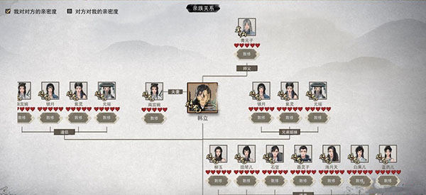1、每个人物都自带人际关系,如:(义)父子、夫妻、道侣、师徒、(义)兄弟姐妹;